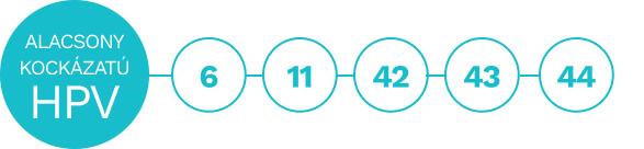 - Alacsony kockázatú HPV-típusok, melyek előfordulhatnak enyhe fokú méhnyakelváltozásokban, de rosszindulatú daganatokban ritkán.5