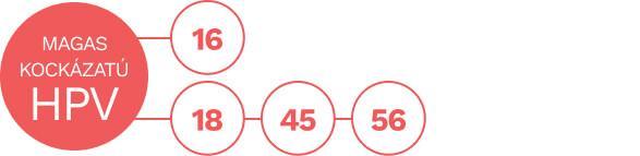 - Magas kockázatú HPV-típusok, melyek vagy azonos gyakorisággal fordulnak elő a méhnyak daganatmegelőző állapotaiban és a rosszindulatú daganatokban, vagy gyakrabban az utóbbi kategóriában.4